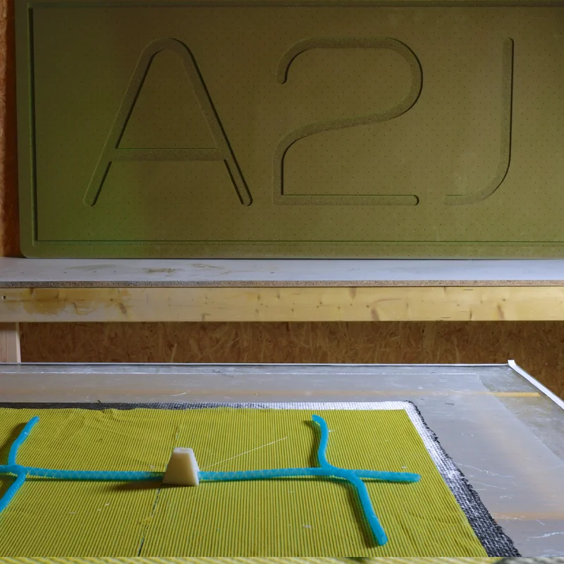 Conscients de l’exigence de notre clientèle en matière de qualité de nos produits, nous nous engageons chez A2J à concevoir et fabriquer des pièces composites de grande taille répondant à un cahier des charges tout aussi exigeant. Le processus de fabrication est la fierté de notre entreprise. Relevant de l’industrie de pointe, il se base sur une chaîne de production numérique de A à Z reposant sur trois technologies majeures articulées autour d’un logiciel propre à nos ateliers. La numérisation de toute notre infrastructure permet à nos équipes d’automatiser les étapes intermédiaires, pour concentrer leur savoir-faire sur leur cœur de métier : la maîtrise du drapage et infusion des pièces, noyau dur de l’industrie des matériaux composites.