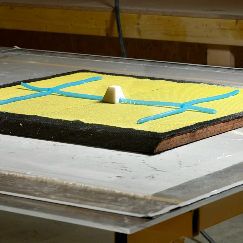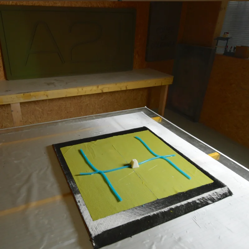 Notre laboratoire d’essai se compose d’un marbre transparent équipé d’un système de vide qui nous permet de visualiser et de contrôler en temps réel le processus d’infusion de la résine lorsque nous fabriquons une pièce, garantie d’un haut niveau de qualité.