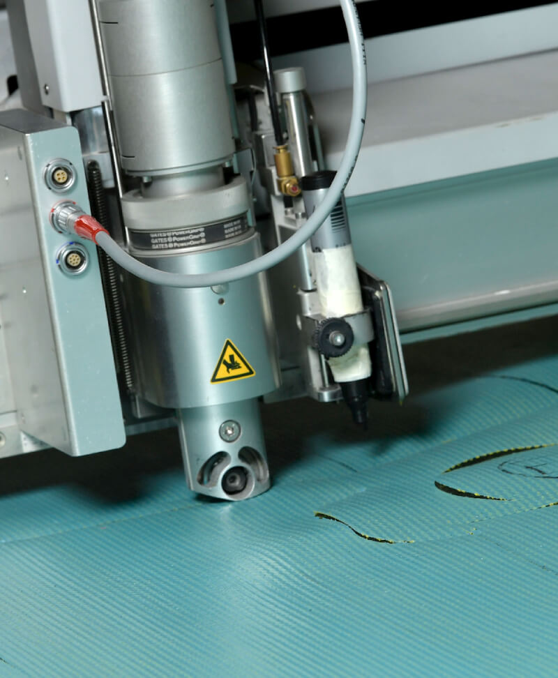 Son cutter monocouche, couplé à des capteurs optiques intelligents, permet une découpe nette et précise, même sur les formes les plus complexes ou les matériaux les plus délicats. Contours nets, finitions impeccables, et raccords parfaits, même sur tissus imprimés ou flexibles.